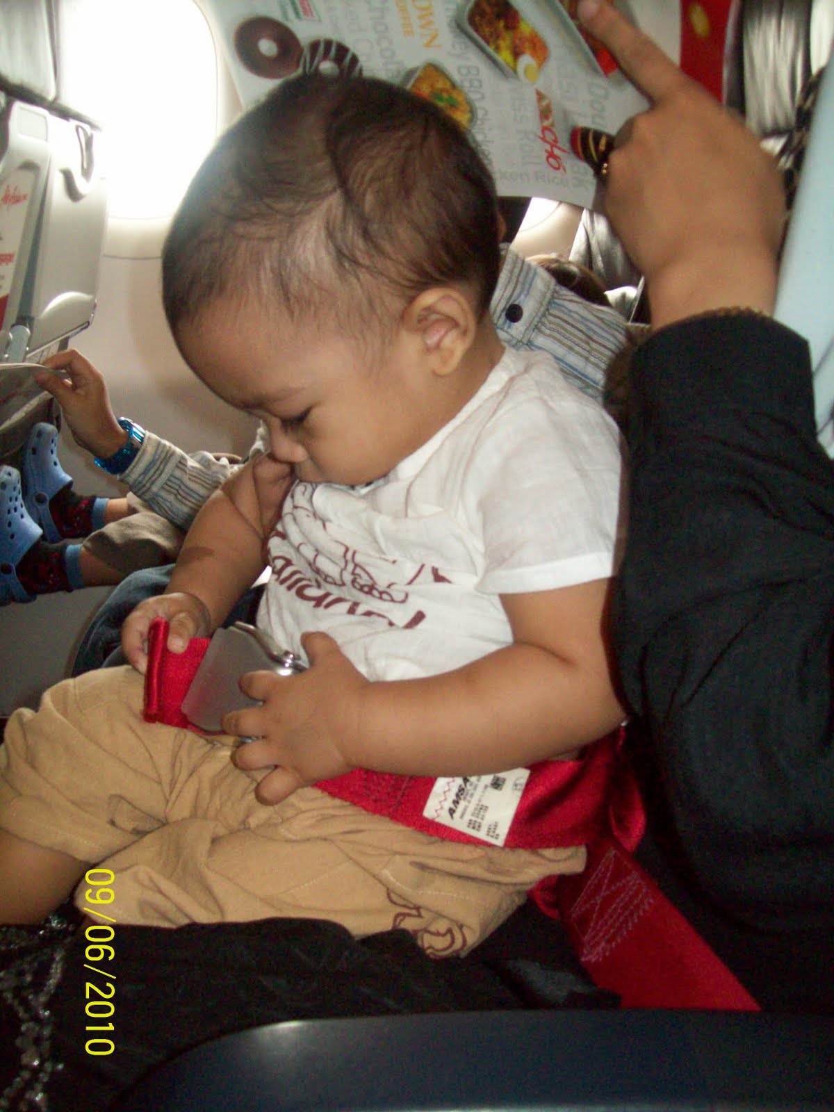 Adik lak first time naik flite so memangla jakun ya amat, semua benda nak capai, nak masuk mulut, nak tarik..bila stewardess pakaikan belt for infant, mulalah adik nak bukak..